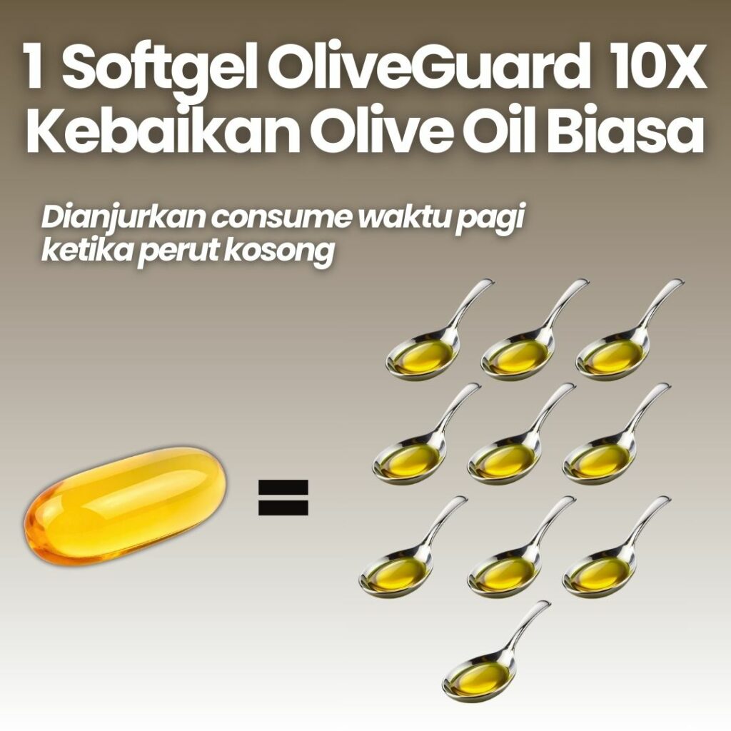 Olive Guard+ formulasi lebih likat berbanding dari olive oil biasa dan juga ada campuran sains iaitu seabuckthorn & tocotrienols . Amalkan 1 softgel Olive Guard setiap pagi sebelum sarapan.